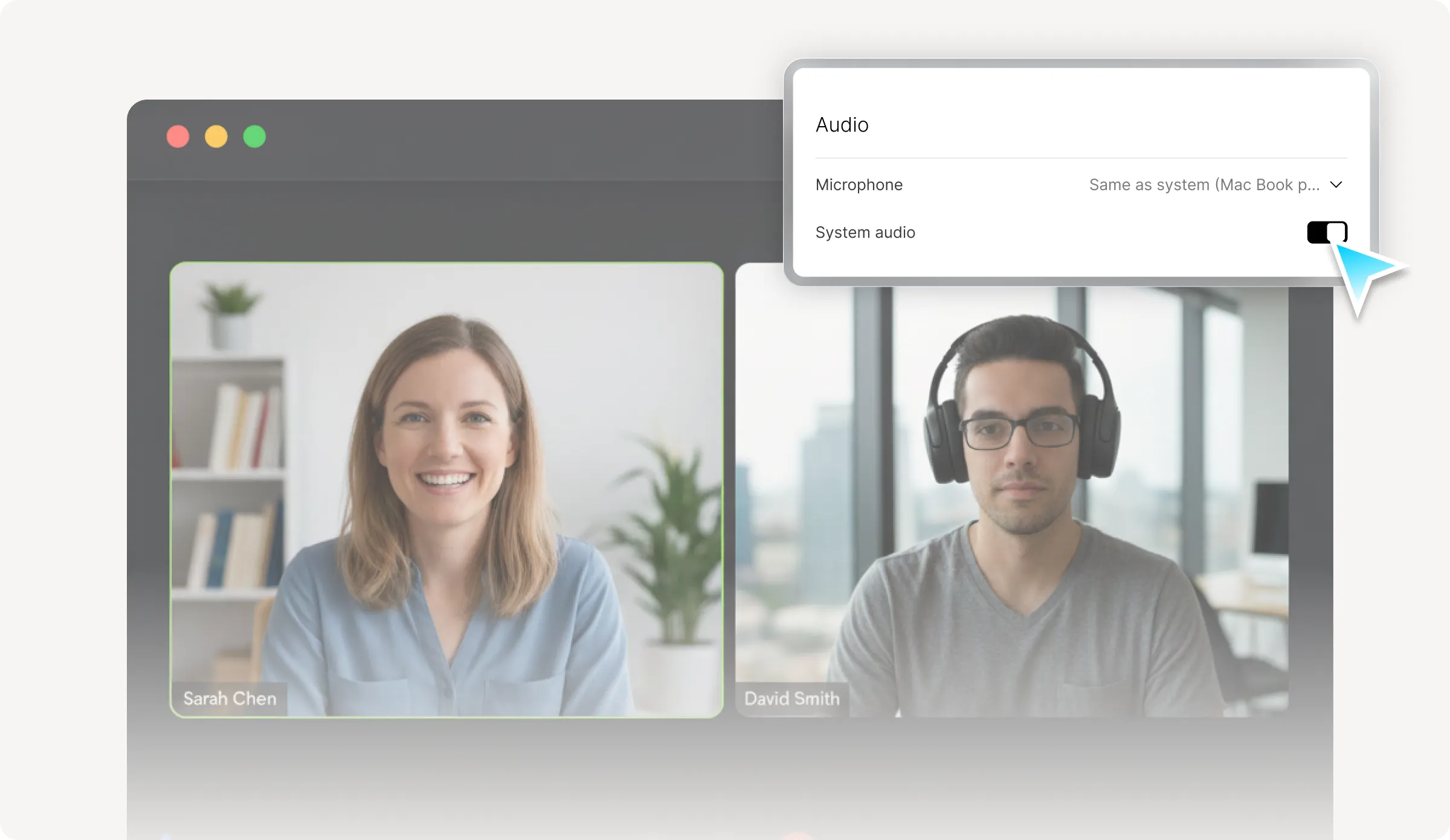 Plaud Desktop captures your meetings natively without adding a bot or joining the call, giving you full control over how and when to record.